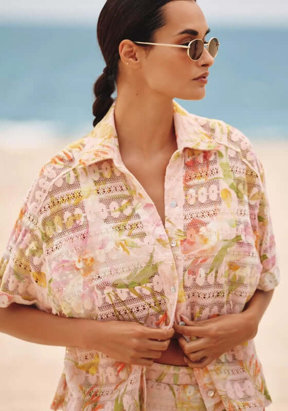 Embrace a girly and flirty vibe with the Petal Blake Beach Shirt by beachwear designer PQ Swim